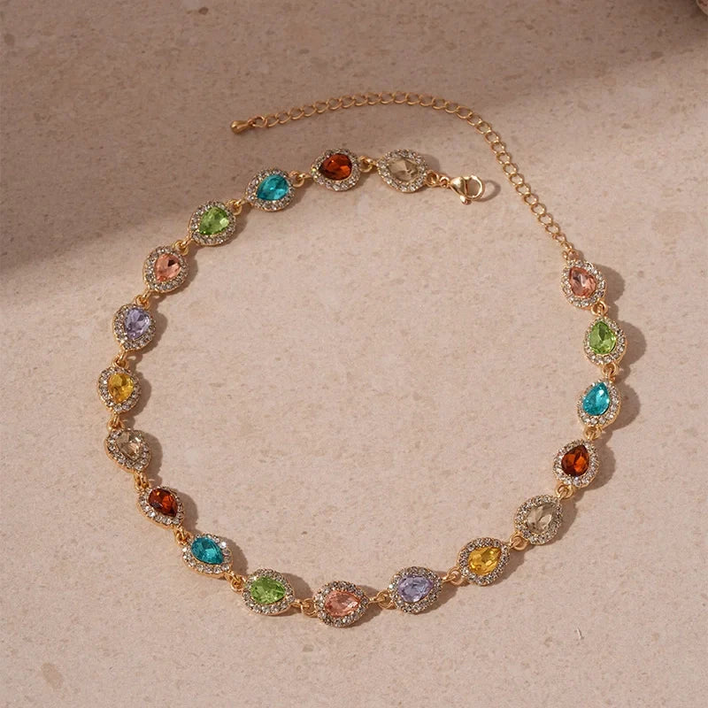 Révélez votre allure la plus distinguée. Ce collier vibrant est conçu pour sublimer chaque tenue, captivant le regard par son éclat pétillant. Chaque cristal est une note de couleur, une promesse de rayonnement.